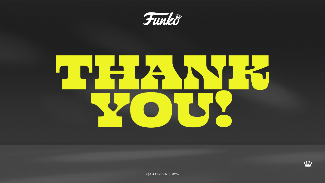 Led creative direction for Funko’s All Hands, shaping how company priorities, performance, and future direction were communicated to internal teams.